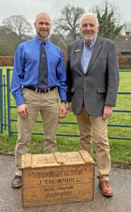 Robert described how his farming grandfather in 1912 had decided to concentrate on poultry production. Over the following few years, he had expanded his operations such that his flock reached ten thousand laying hens producing free-range eggs. In order to handle these quantities, he set up an egg-packing station, which was the first of its kind in Derbyshire. (An example of the sort of wooden boxes in which these eggs were sent to market is shown in the accompanying photograph). In time, the business turned to the production of poultry meat, which was a premium product, far more expensive than beef in the years before World War II. By the 1970s, Thornhill’s chicken processing factory in Great Longstone employed 450 people. In the meantime, Robert’s father (Peter) and uncle who, by then were running the business in partnership, decide to diversify, with Peter concentrating on cattle rearing from the 1950s.